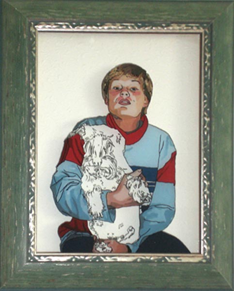 Blumenkinder 4 ("mit Hund 1") 2011 Hinterglasmalerei/Mischtechnik 24 cm x 18 cm |