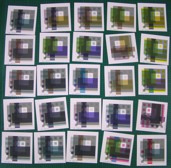 einzelne Unikate 1988 Siebdruck auf Karton je 16 cm x 16 cm |